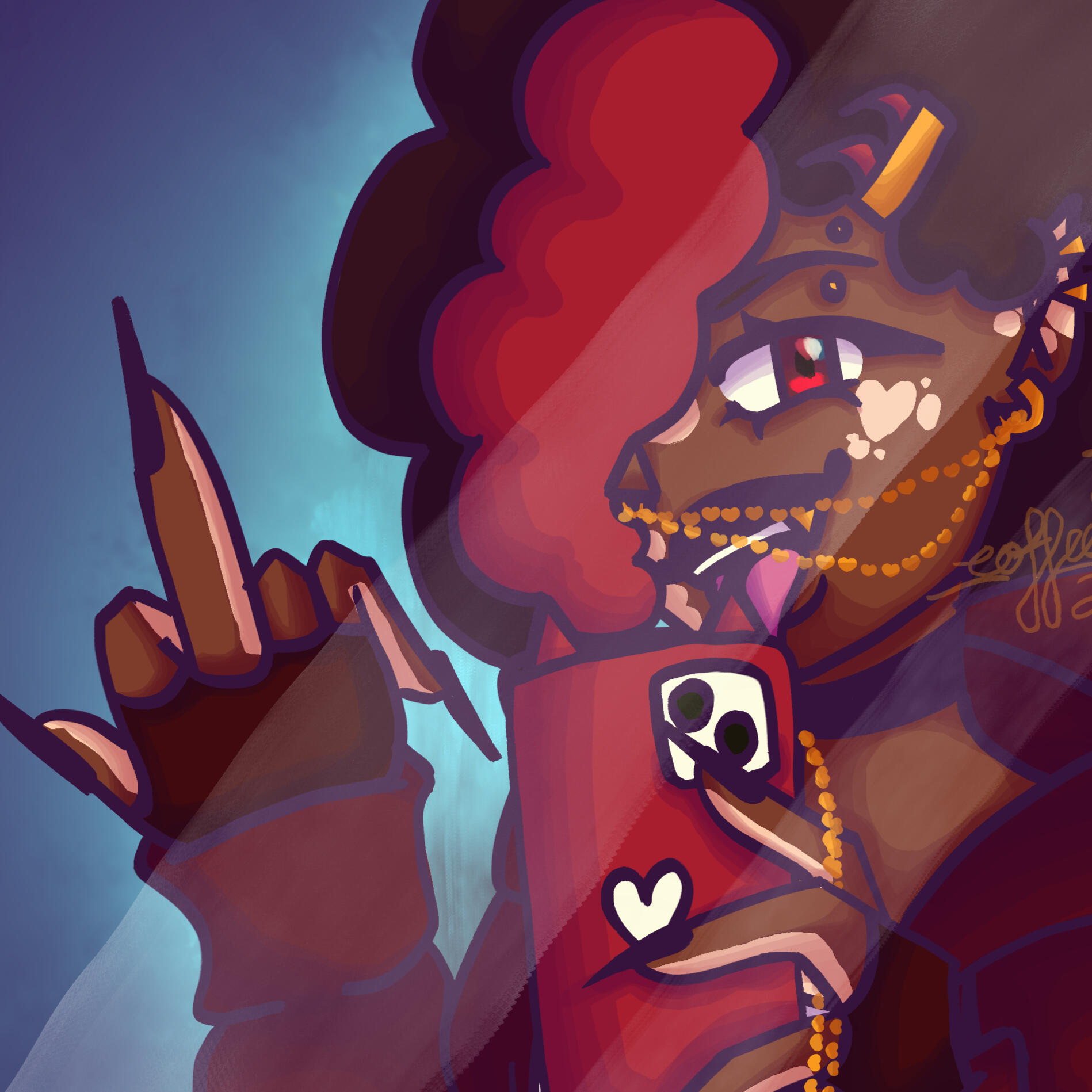 An easily impressionable teenager sporting many mental health issues. With a lot of family problems and undying loyalty to those they call friends, Dakota roamed the wastelands until they met the Order of the Old World and the Kingdom of Undercrab!Also known as, my favourite spink spoink!